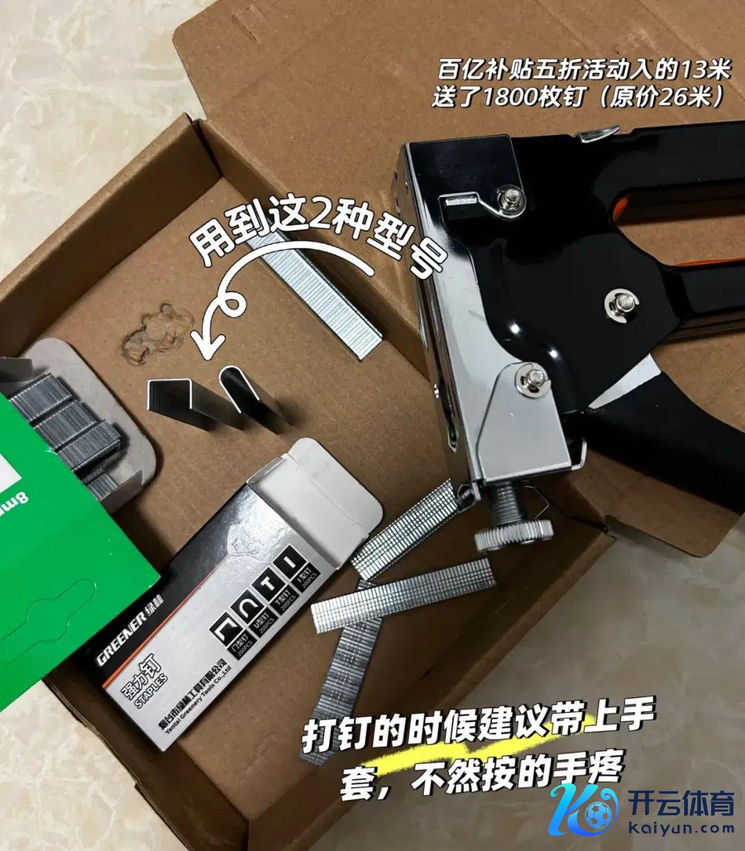你需要用的东西,就三种,一种是上图的钉枪,一种是底下的弯针,还有即是一块沙发布,皮的、布艺的字据喜好即可。