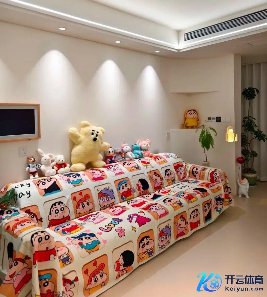 你看上头这个沙发,自身是有点老气、有点板正的。
