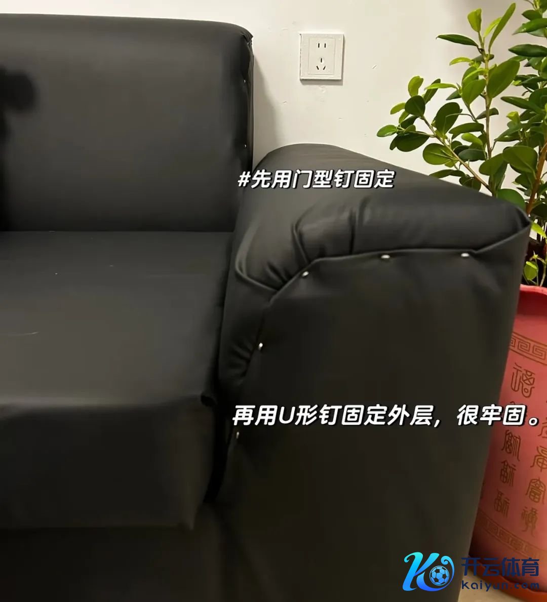 要想偷懒,想扶手侧面、沙发靠背侧面,这种场地也不错用U型针一顿固定。