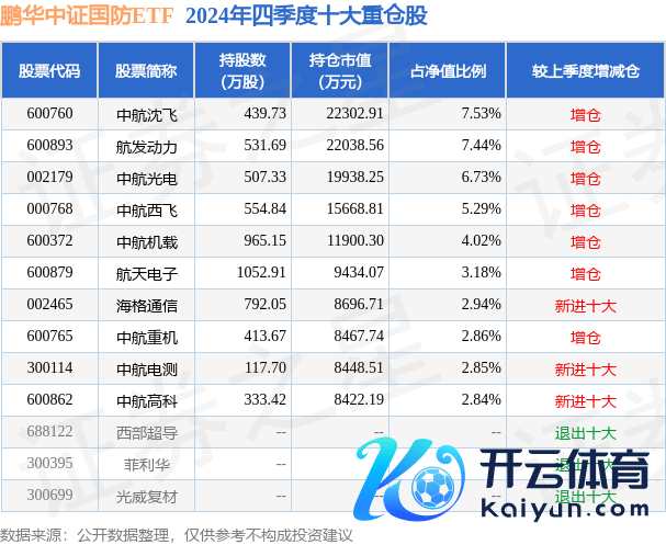 鹏华中证国防ETF为指数型-股票基金,字据最新一期基金季报闪现,该基金钞票建立:股票占净值比98.48%,无债券类钞票,现款占净值比1.73%。基金十大重仓股如下: